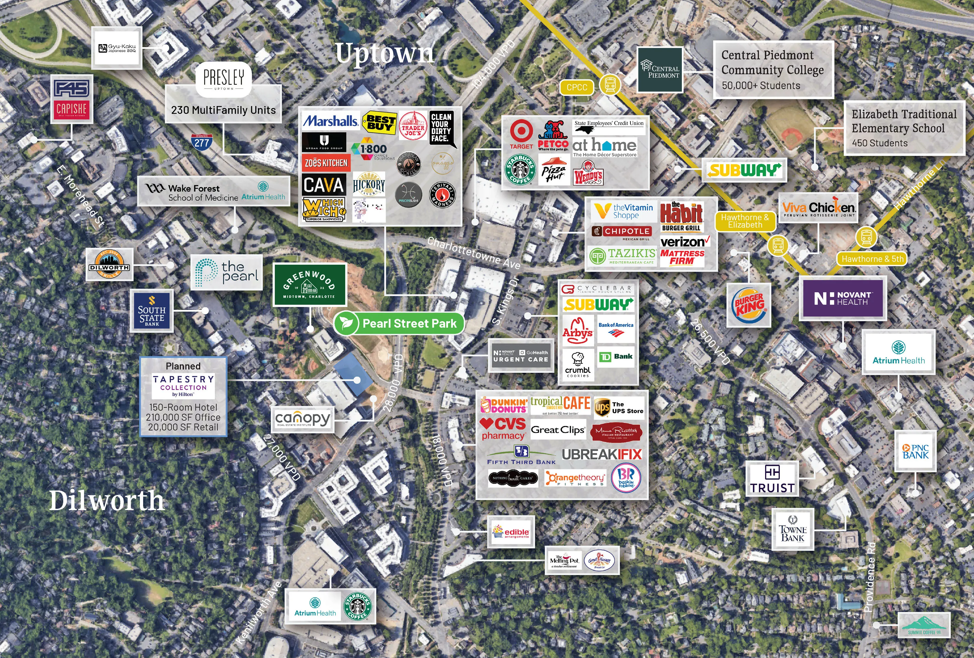 We are pleased to offer 1113 Greenwood Cliff for lease. Built in 1935, this charming +/- 2,139 square foot property blends Uptown proximity with a quaint neighborhood feel. With its cottage-style design, the property boasts curved features, original hardwood floors, a stucco facade, and ample windows. The property’s two stories comprise 6 offices, 2 conference areas, 2 restrooms, and a kitchenette. The property is within walking distance to the newly restored Pearl Street Park, close to popular retail and restaurant destinations, and less than 5 minutes to I-77, I-277 and Charlotte’s CBD.