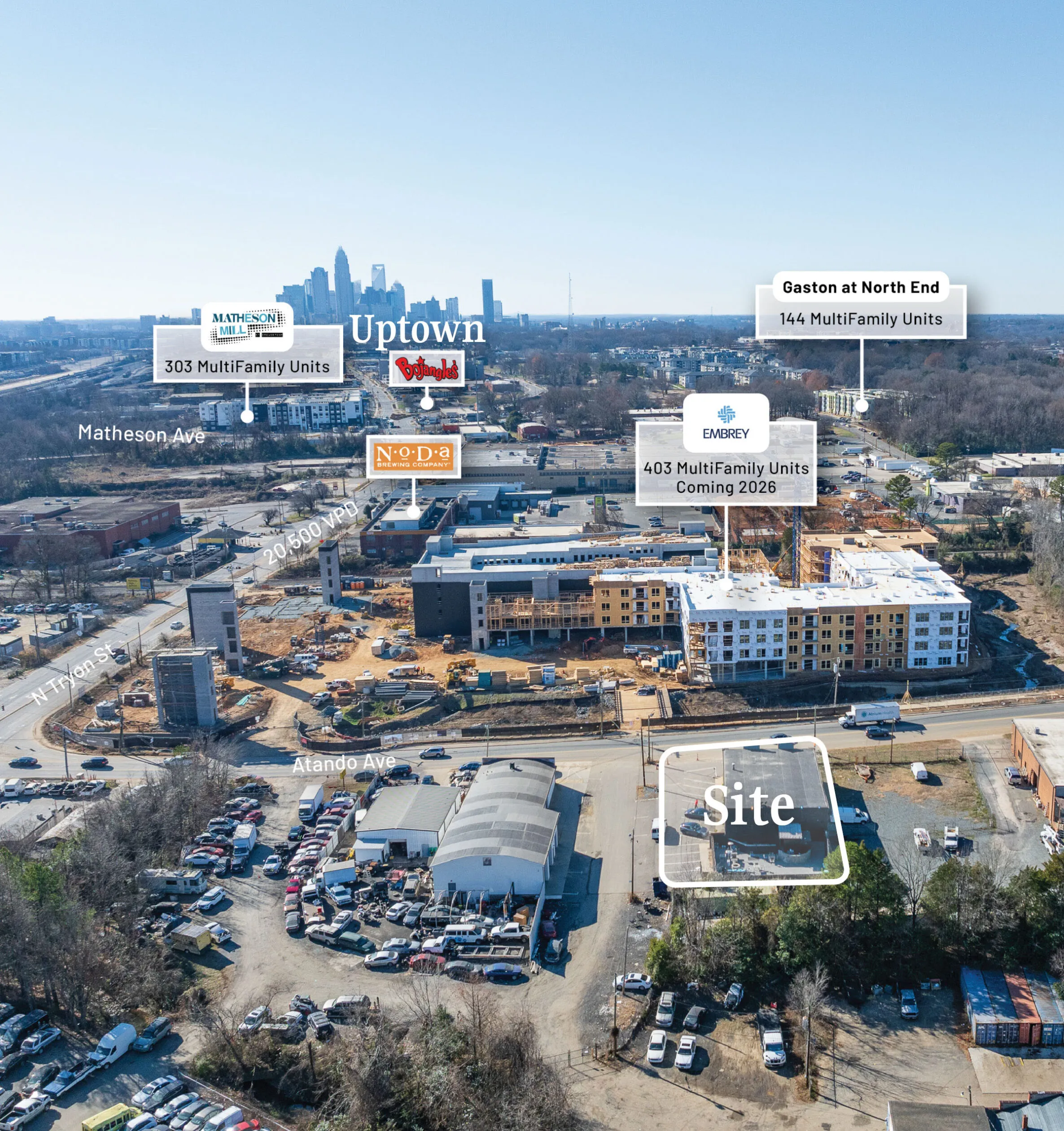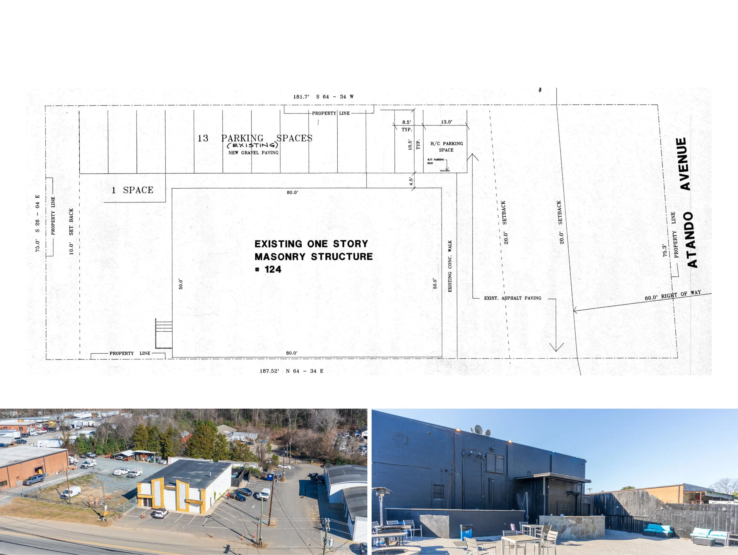 124 Atando Avenue is a +/- 6,052 SF property situated on a +/- 0.317 AC lot in Charlotte, North Carolina. Constructed in 1957, this single story building that includes a mezzanine level has historically operated as a gentleman’s club. The Atando Avenue corridor is experiencing significant development, increasing its appeal for investors and developers.