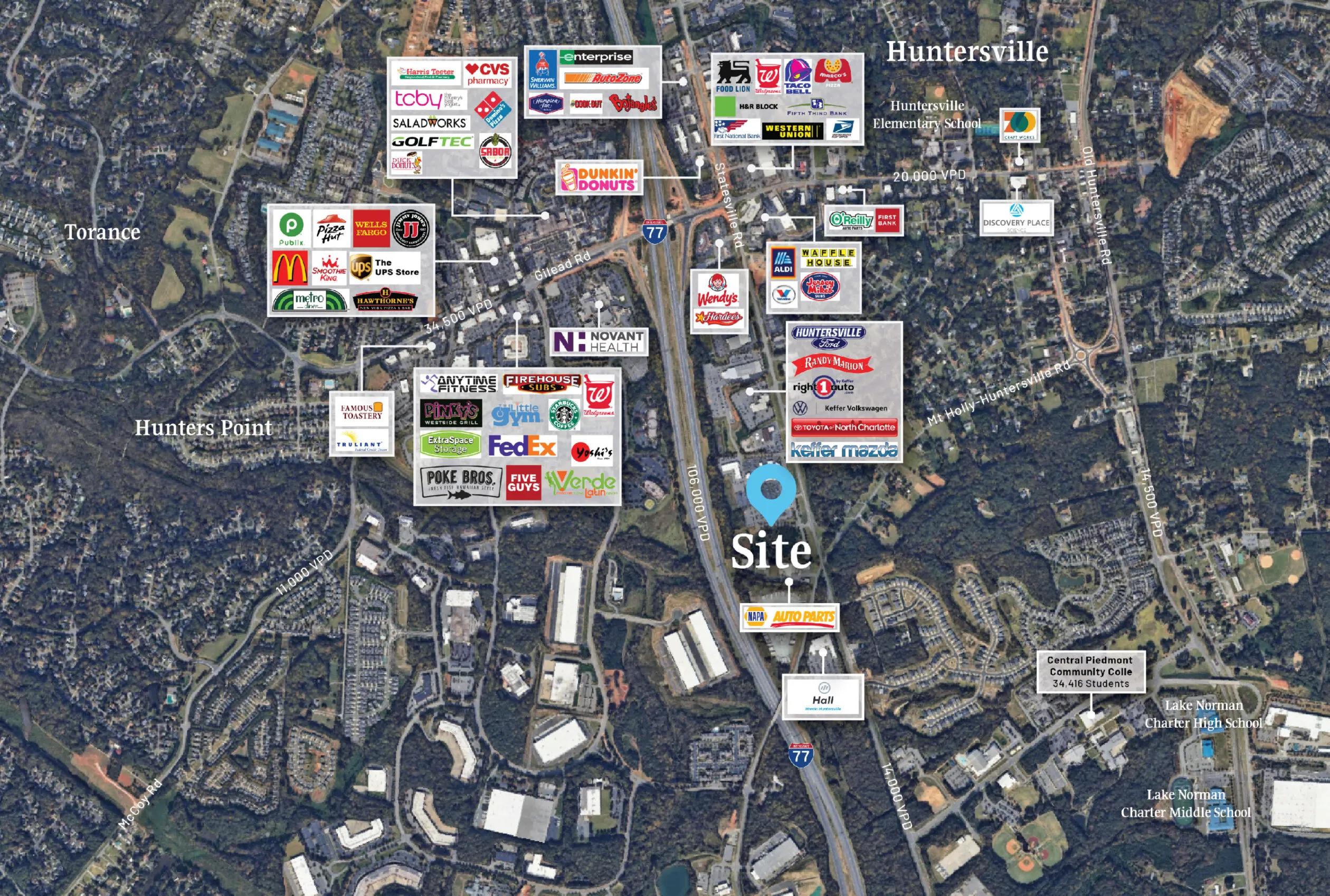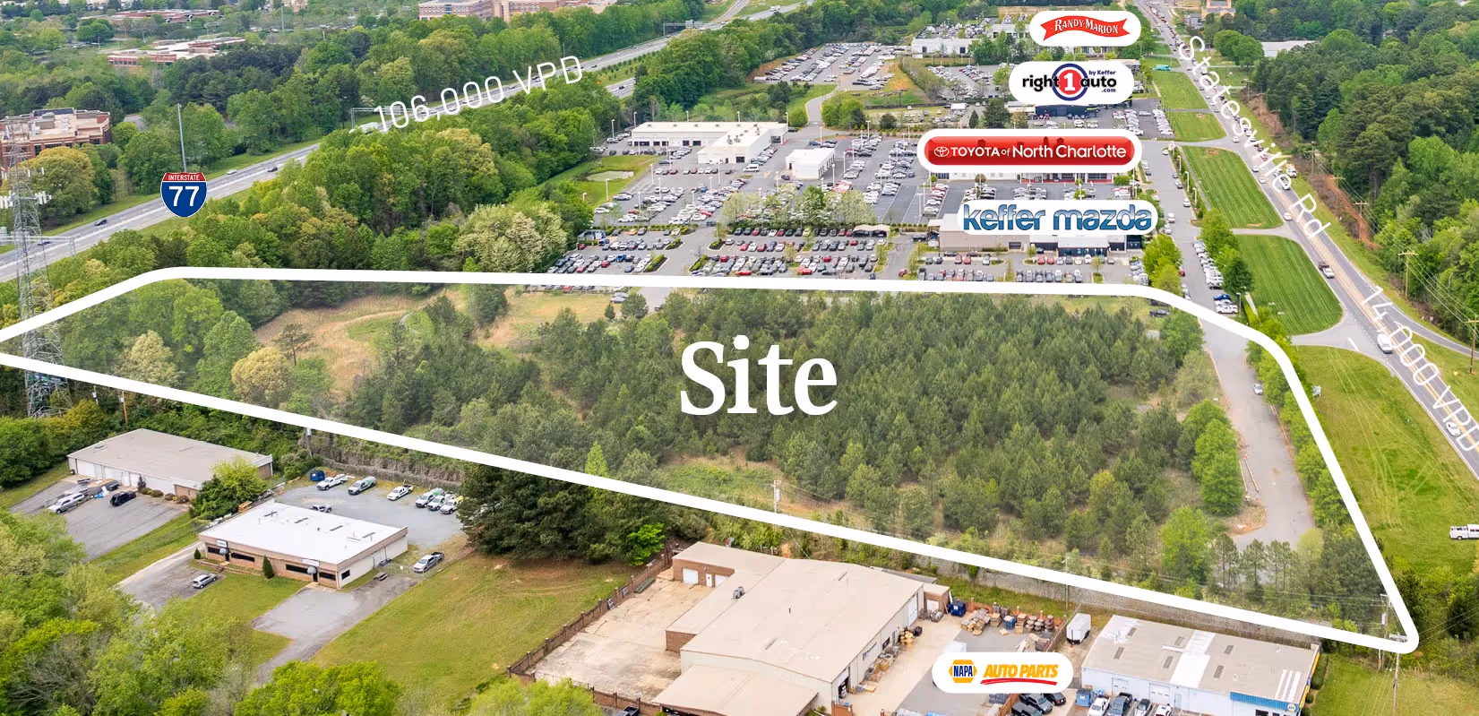 An exceptional commercial land offering! Approximately 7.91 acres in Huntersville, NC. Positioned strategically, the site enjoys a prominent location backing onto I-77 and facing Statesville Rd, ensuring substantial visibility and accessibility. With its high traffic counts, this parcel emerges as a premier destination for businesses seeking optimal exposure. Noteworthy is its distinction as the last available Automotive Site along the esteemed Huntersville Motor Mile, amplifying its desirability and commercial significance within the region.