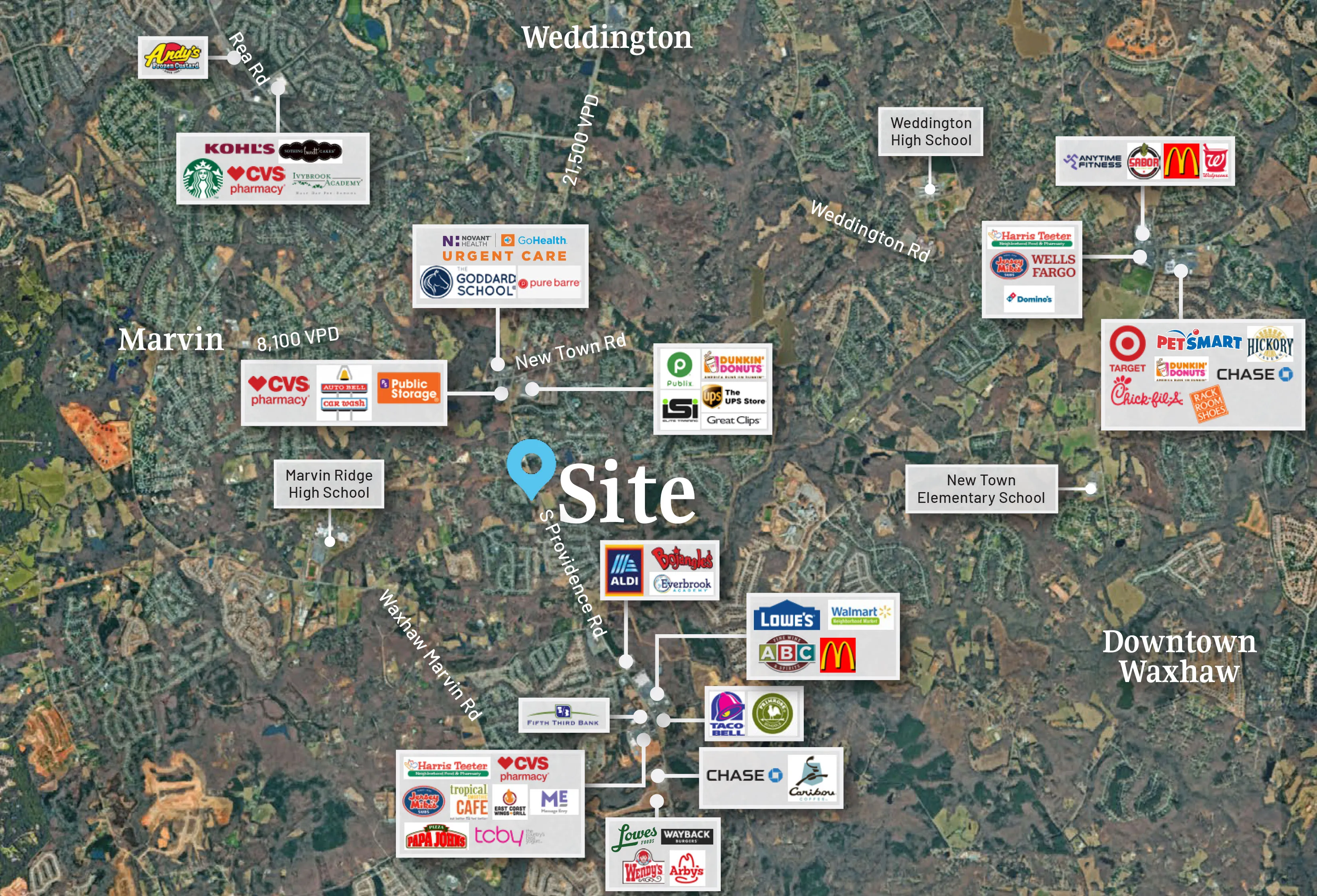 +/- 2.851 AC available on Providence Rd South in Marvin, NC. The property is nestled within an affluent residential corridor characterized by upscale neighborhoods and executive homes, reflecting the strong demographics and quality of life that define this part of Waxhaw. The location provides convenient access to premium amenities including highly-rated Weddington and Marvin area schools, upscale shopping and dining options at nearby Waverly and Providence Marketplace, championship golf courses, and extensive recreational facilities.