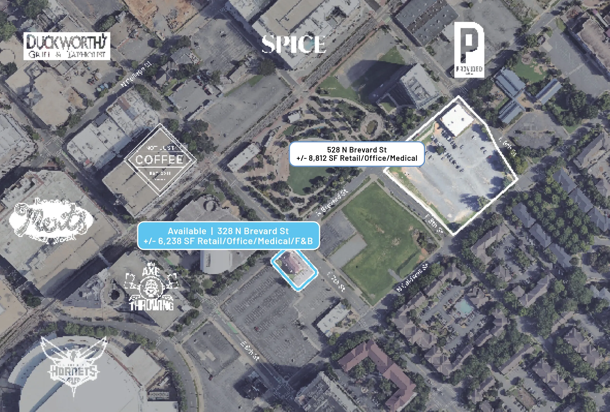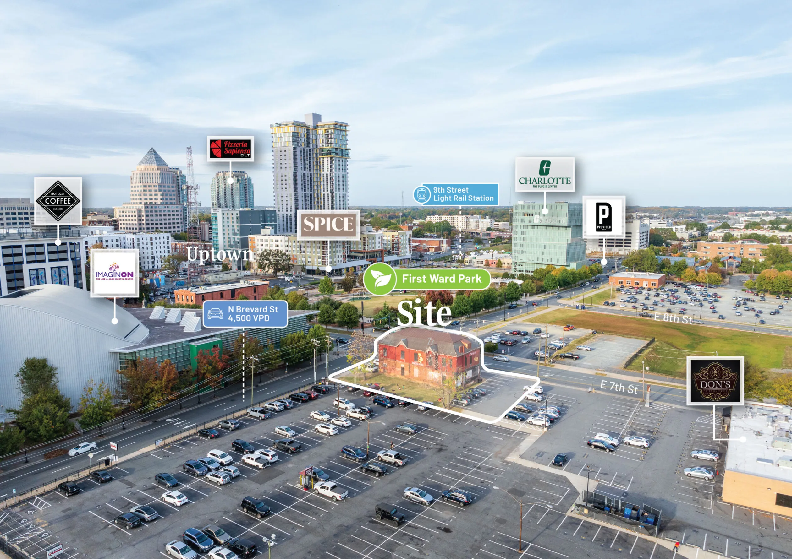 Located in the heart of Uptown Charlotte, 328 N Brevard St offers ±6,238 SF of unique, historic space available for lease. This Victorian-era building, known as the William Treloar House, stands as the last row house in the First Ward and is an excellent adaptive re-use candidate. Within walking distance of major attractions like the Spectrum Center, Discovery Place Science, First Ward Park, and Bank of America Stadium, this space is ideal for retail, office, or food & beverage use.
