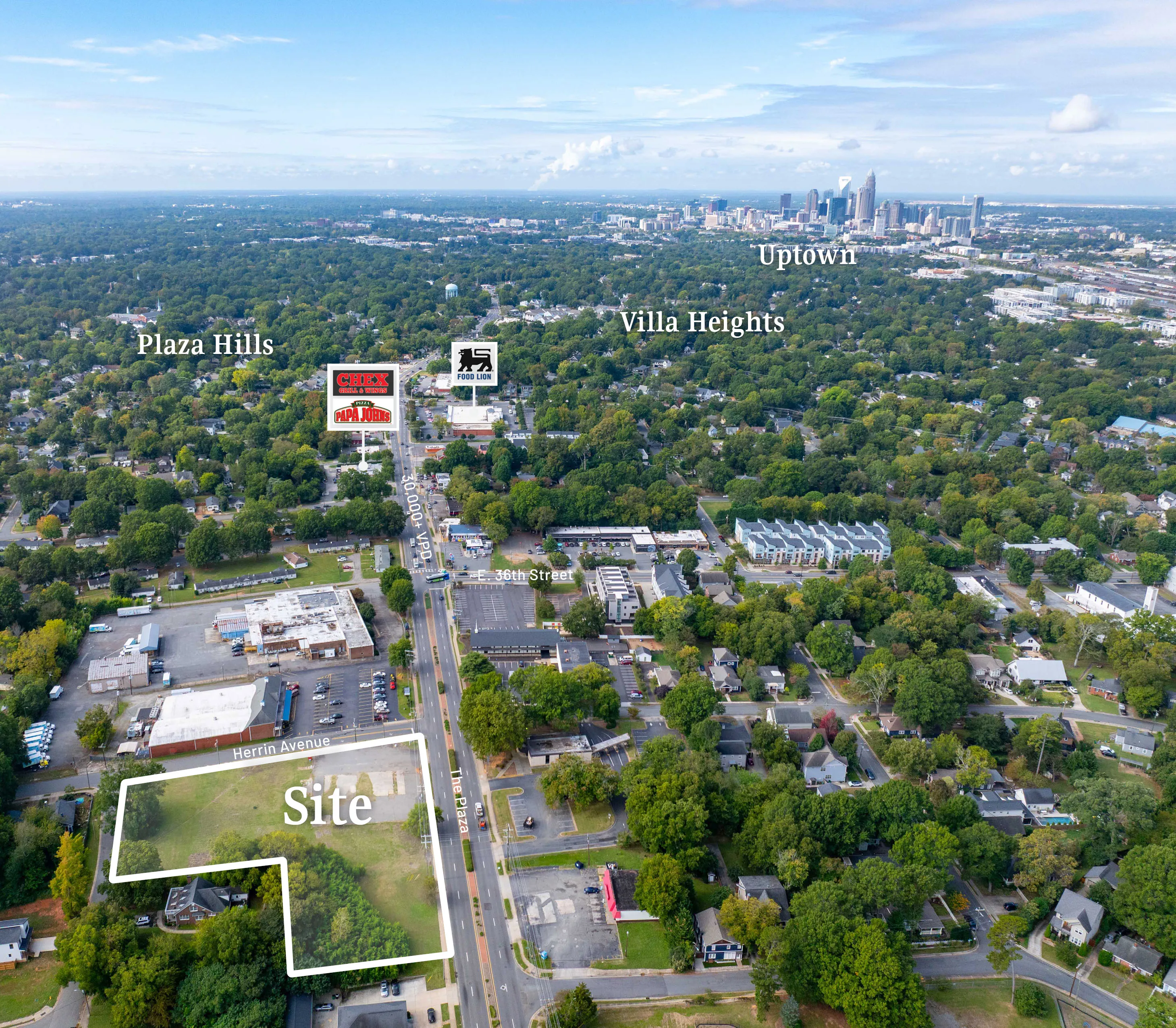 Positioned between two of Charlotte’s most vibrant and sought-after neighborhoods— NoDa and Plaza Midwood—this high-profile site offers more than 2 acres of prime redevelopment potential. The property spans two hard corners (The Plaza & Herrin Avenue & Tappen Place) providing exceptional visibility and accessibility along the busy The Plaza. Currently zoned CG (Commercial General), the site supports a wide range of permitted uses including various retail (fitness, art gallery, music venue, restaurant/bar, hotel) as well as office.