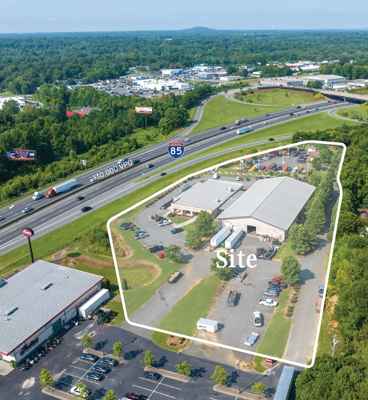 +/- 28,543 SF retail building fronting I-85 with 130,000 vehicles passing per day. The building with additional garage space is ideal for retail, showroom, auto/ motorsport sales or any user needing great highway visibility.