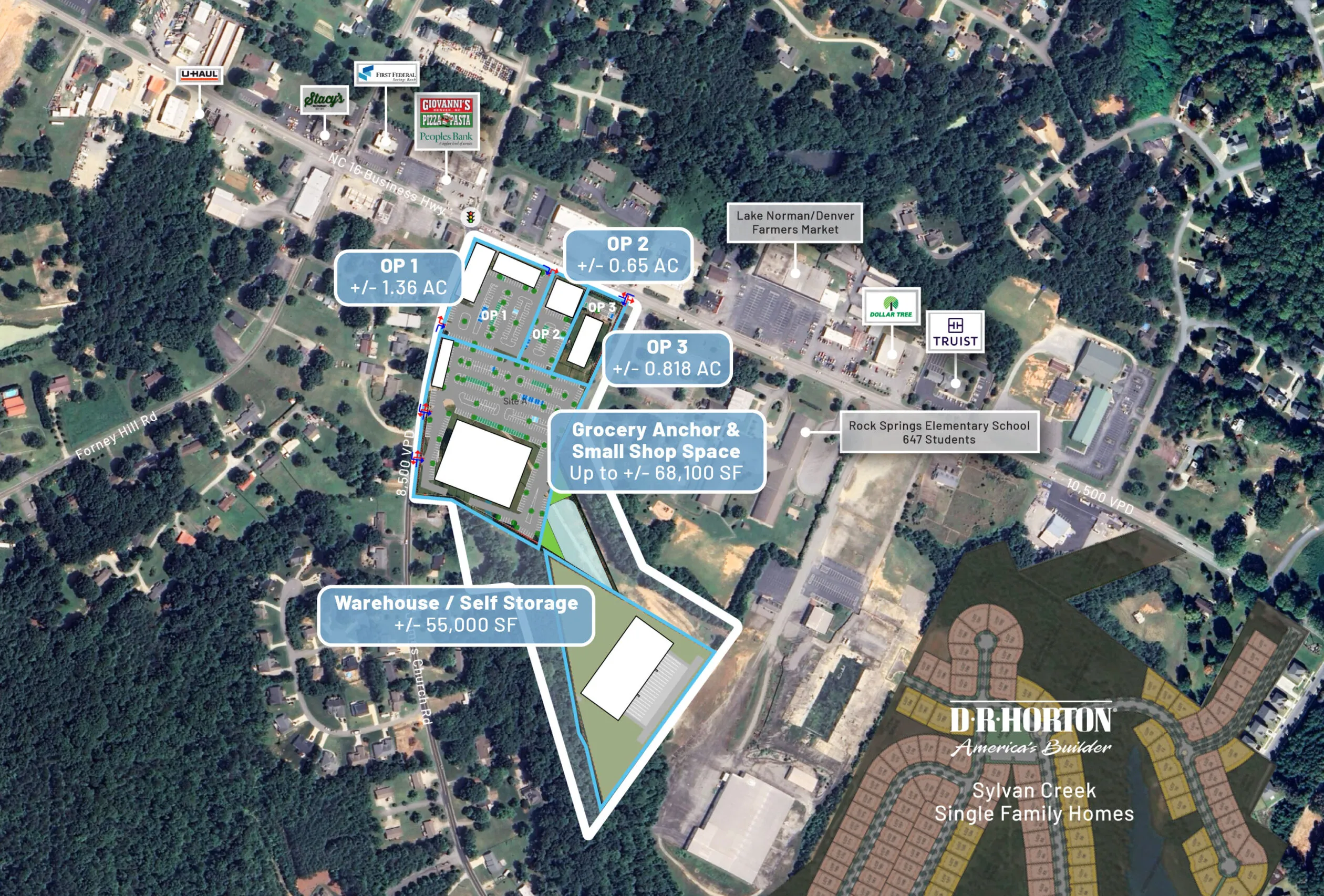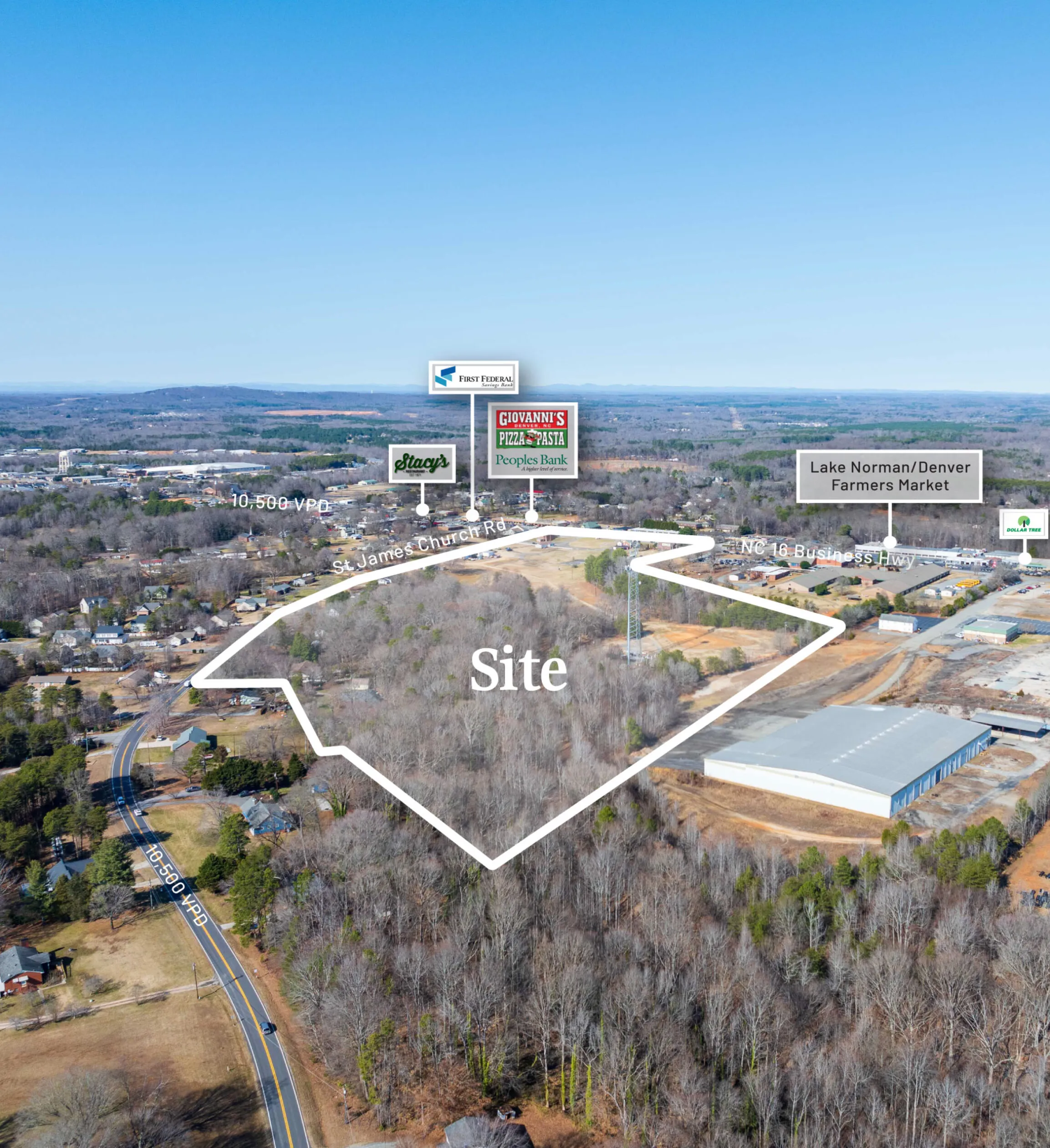 Offering ± 68,100 SF of prime retail space at the highly visible corner of NC-16 Business and Saint James Church Road in Denver, NC, this site also supports medical office or light industrial uses. With prominent building and monument signage available, direct access from major thoroughfares, and drive-thru/outparcel opportunities, tenants can capitalize on consistent traffic and easy ingress/egress. Positioned in the heart of a rapidly growing community, this location is poised to meet the area’s expanding commercial demands.