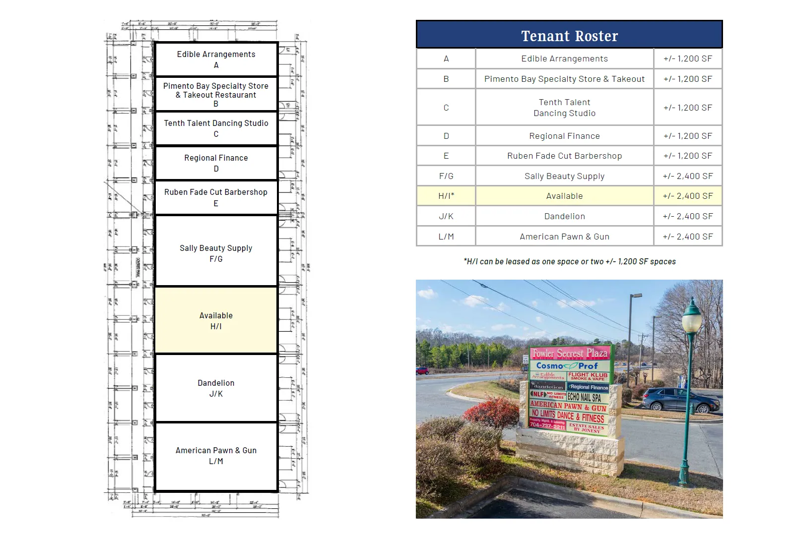 Located Southeast of Charlotte in Monroe, NC, Fowler Secrest Plaza is positioned along Hwy 74 one of the most heavily traveled thoroughfares in the area. Ideal for a variety of retail uses, Fowler Secrest Plaza is close to Poplin Place and within close proximity to numerous other retailers.
