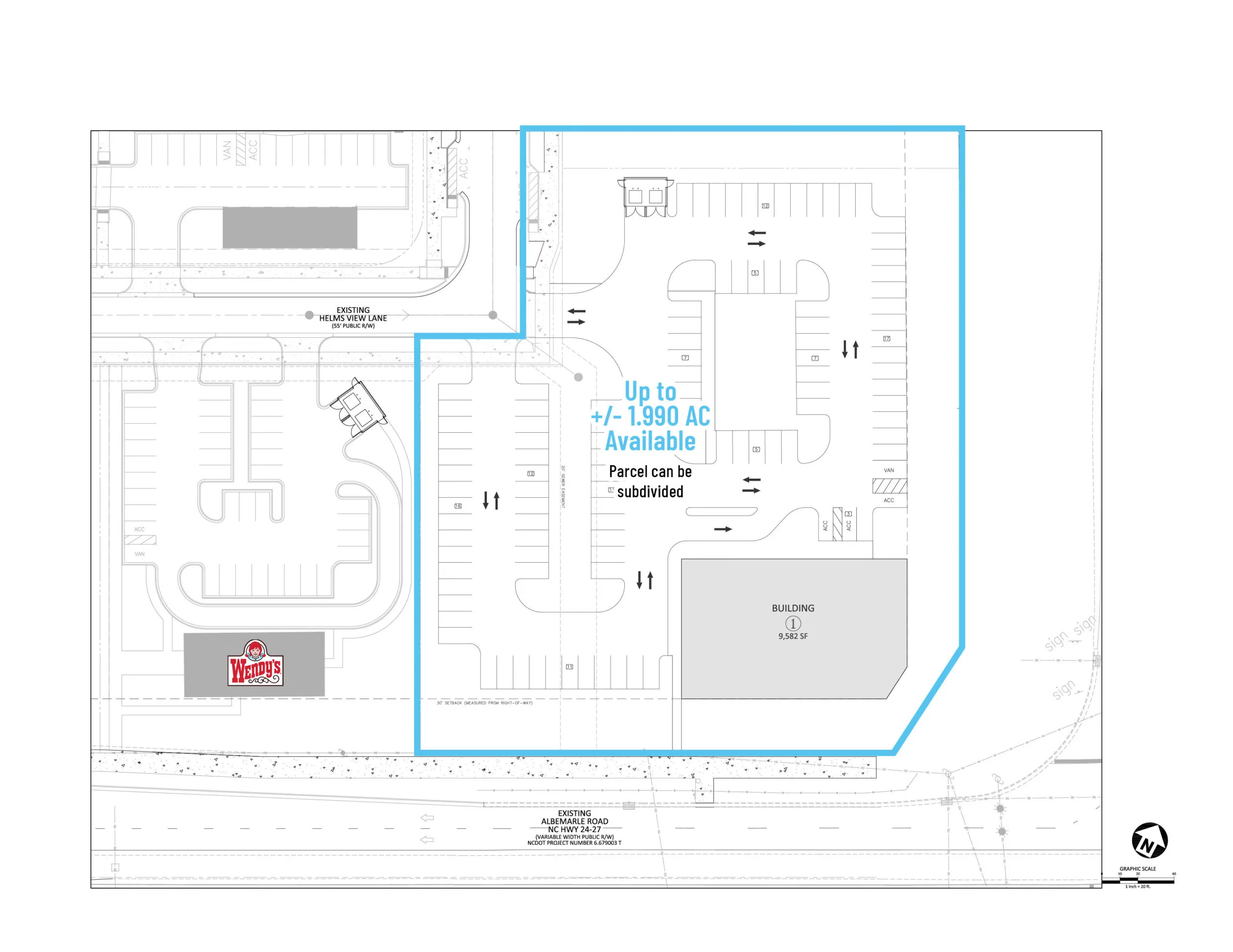 +/- 1.990 AC available for ground lease or build to suit at the intersection of I-485 and Albemarle Rd. This is a great opportunity for restaurants, retail, medical, and service uses. Lemmond Farm has excellent access, high visibility and boasts a signalized corner, enhancing its prominence at the intersection of Lemmond Farm Dr. and Albemarle Rd. Lemmond Farm Apartments, built in 2020 with 336 luxury units, is adjacent to the site, with multiple single-family residential developments and a new Publix-anchored grocery center 1 mile from the site.