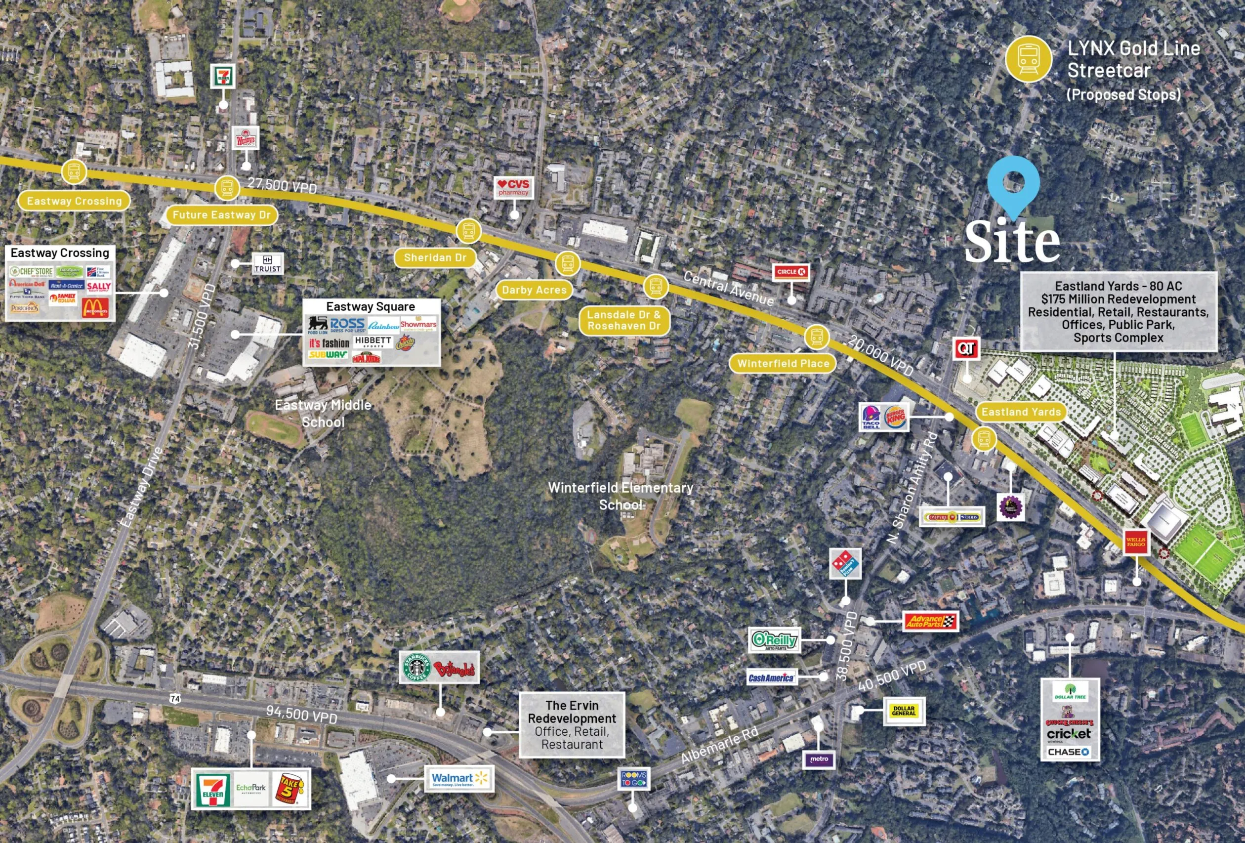 Rare development opportunity with +/- 6.5 AC of land. Conveniently located just 0.6 miles from the Eastland Mall Redevelopment site, this property presents a chance to invest in a growing area only 8 minutes away to the thriving community of Plaza Midwood and 5 minutes from the lively Eastway Crossing.